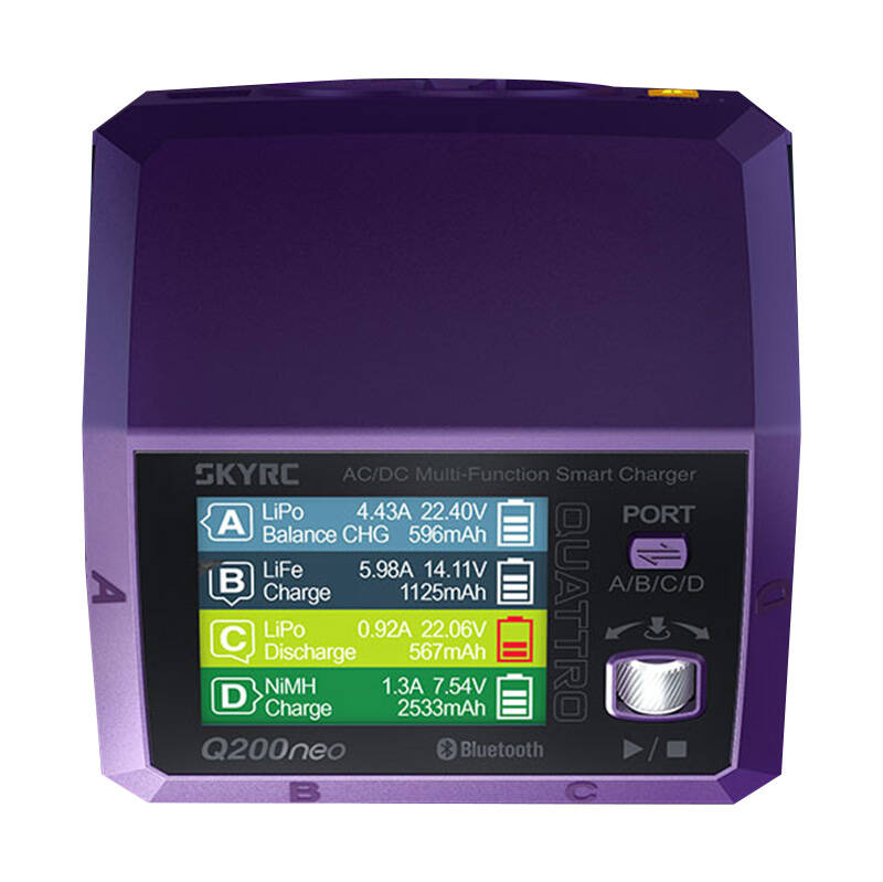 Innowacyjna ładowarka SkyRC Q200neo to idealny wybór dla każdego miłośnika RC. Umożliwia ładowanie 4 różnych akumulatorów jednocześnie i może być zasilana zarówno za pomocą prądu stałego, jak i zmiennego. Wyróżnia się mocą nawet 400 W i wbudowanym balanserem o wysokiej precyzji, który optymalizuje wyrównywanie napięcia w zakresie ±0,02 V. Mimo swoich potężnych możliwości produkt jest zaskakująco niewielki i poręczny.